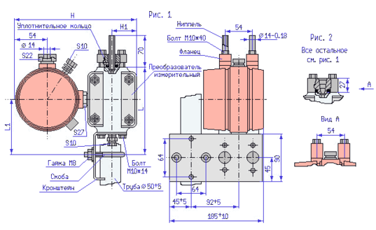 При установке преобразователя с поставляемым комплектно вентильным блоком монтажные фланцы и вентильный блок совместно крепится четырьмя болтами М10х70. уплотнение соединений осуществляется установкой уплотнительных колец, входящих в комплект монтажных частей.