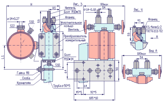 Рис.4 - Преобразователь с установленными вентильным блоком и фланцами.
