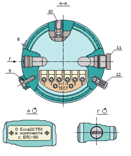 Клеммная колодка 1 предназначена для присоединения жил кабеля, винт 2 для присоединения экрана (в случае использования экранированного кабеля), болт 12 для заземления корпуса.
