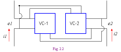 Пример 2.1.. Конструкция ЛОП представлена на фиг. 2.2. Он состоит из двух источников тока VC-1 и VC-2, управляемых напряжением: напряжение на одном из них является управляющим для другого