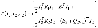 Отсюда следует, что функция (3), имеет глобальный минимум. Итак, минимизация функции (3) при ограничении в виде уранений первого закона Кирхгофа (2) приводит к уравнениям второго закона Кирхгофа (1). Следовательно, расчет электрической цепи постоянного тока эквивалентен поиску минимума функции (3) при ограничении (2). Другими словами электрическая цепь моделирует задачу квадратичного программирования.