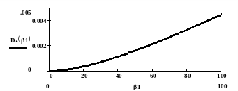 Рисунок 2.7 Зависимость дисперсии процесса на выходе первого линейного фильтра от его полосы пропускания.