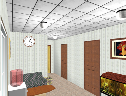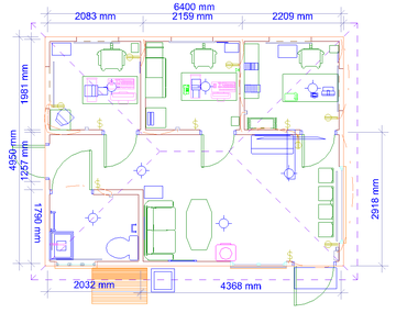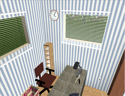 План офісу розроблявся, виходячи з кількості співробітників і заданого встаткування (3 комп'ютери, 2 принтери, 2 сканери, 1 блоку безперебійного живлення, музичний центр, осцилограф). На плані показани меблі, комп'ютери, електротехнічні арматури (світильники, вимикачі, розетки), вікна й двері.