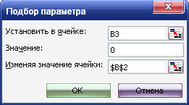 При клацанні на ОК програма підбирає параметр для комірки зі змінною перемінною, щоб значення цільової функції дорівнювалося нулю.