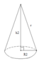 У конусі получили прямокутний трикутник АОВ, кут О = 90о, h – катет у прямокутному трикутнику. Для знаходження катетів обчислимо корінь із різниці гіпотенузи r та катета R.