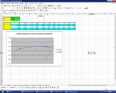 Рішення системи нелінійних рівнянь виконується аналогічним способом задачі 1.1.