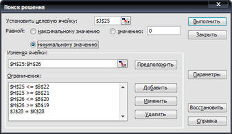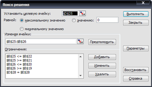 Рисунок 2.29 – Діалогове вікно «Пошук рішення» для знаходження мінімуму