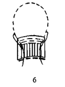 Подстриженные волосы нижней затылочной зоны закрепляем салфеткой, чтобы не мешали дальнейшей стрижке. Волосы на макушке собираем в пучок, перекручиваем и срезаем тупым срезом на высоте около 5 см. (рис. в).