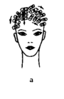 При выполнении химической завивки волосы следует накручивать на бигуди в направлении будущей укладки (рис. а).
