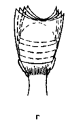 Выбираем на середине затылочной зоны вертикальную прядь и срезаем, укорачивая вниз до 2 см. Эта прядь будет контрольной. Отделяем по всему контуру вертикальные пряди и стрижем, ориентируясь сначала на контрольную, затем на предыдущую пряди, от середины к ушам (рис. г).