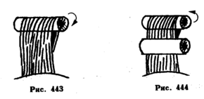 Для создания глубокой волнистости волос применяется накрутка на две бигуди. Первую прядь накрутить на три оборота (рис. 2.19). Затем подложить вторую бигуди или коклюшку и накрутить в противоположном направлении (рис. 2.20).