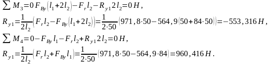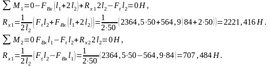 Из предыдущих расчетов имеем Ft=2364,5Н, Fr=971,8Н; из первого этапа компоновки l1=84мм, l2=50мм.