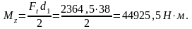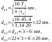 d=22 b×h=6×6 t1=3,5; длина шпонки l=40мм; момент на ведущем валу Т1=45,5Н·м