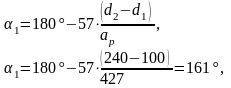 Определим угол обхвата меньшего шкива /1, формула 7,28/