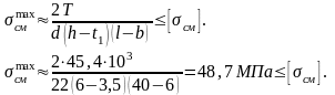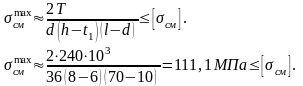 Напряжения смятия и усилия прочности /1,формула 8.22/