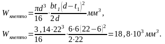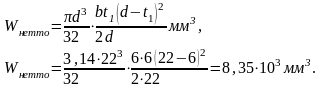 Момент сопротивления сечения нетто при d=22мм, b=6, t1=6.