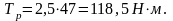 где к=2,5÷3-коэфициент, учитывающий условие эксплуатации; Тном=47,4 Н*м.