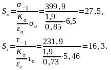 Уточненный расчет состоит в определении коэффициентов запаса прочности s для опасных сечений и сравнении их с требуемыми значениями [S]. Прочность соблюдена при S ≥ [S], где [S]=2,5