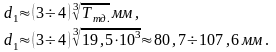 Согласно/1, таб. 7,8/ с учетом того, что диаметр шкива сечения А недолжен быть менее 100 мм, принимаем d1=100 мм.