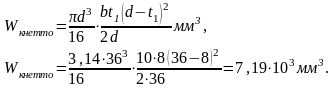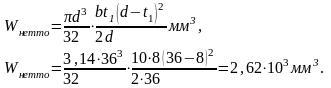 Момент сопротивления изгибу сечения нетто при d=36мм, b=10, t1=8