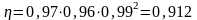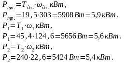 КПД цилиндрической зубчатой закрытой передачи, η1=0,97; КПД ременной передачи, η2=0,96; КПД учитывающий потери пары подшипников, η3=0,99.