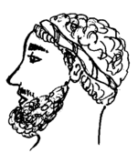 Повседневная мужская прическа состояла из коротко остриженных волос, недлинной бороды и усов. Некоторые щеголи носили длинные волосы, завитые в локоны и подхваченные золотым обручем.