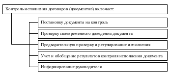 Контрольная деятельность предполагает, с одной стороны, контроль за исполнением документов по существу поставленных в них вопросов, а с другой – за соответствием формы создаваемых документов их содержанию и за своевременностью исполнения. Первую группу контрольных операций выполняют руководители всех рангов, вторую – делопроизводственная служба учреждения с входящей в ее состав службой контроля исполнения.50
