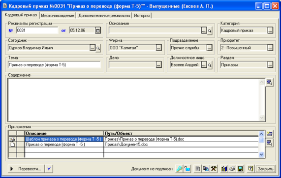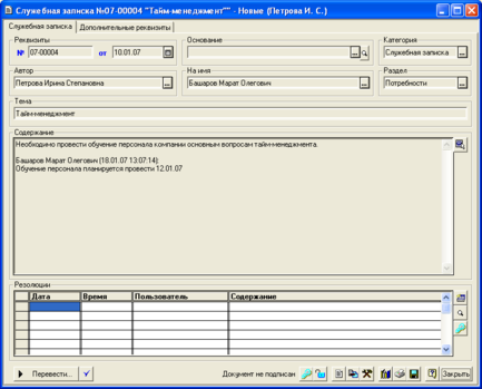 Для организации служебной переписки в системе существует документ "Служебные записки" (рис. 10).