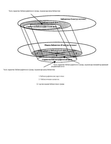 Справочно-библиографический аппарат включает в себя, по Д. Я. Коготкову, три компонента: библиотечные каталоги, библиографические картотеки и справочно-библиографический фонд. Первые два компонента однозначно относятся к разновидностям моделей библиотечного фонда - их прототипа. Со справочно-библиографическим фондом дело обстоит несколько сложнее. С одной стороны, он представляет собой составную часть самого библиотечного фонда, физически представлен в нем как относительно автономный подфонд - такой же, как, положим, под-фонд любого другого структурного подразделения: читального зала, абонемента, филиала. Но с другой стороны, поскольку назначение части этого фонда - отражать фонд же, то одновременно этой частью (точнее, той частью библиографических записей, которая отражает фонд данной библиотеки), справочно-библиографический фонд тоже входит в модель библиотечного фонда. Иными словами, структурно и функционально он двуедин: он одновременно входит и в библиотечный фонд, и в модель этого фонда; он выполняет функцию и прототипную - в одном отношении, и идентификационную - в другом отношении. Но самостоятельным, отдельным элементом первого контура в системе «библиотека» он, как бы то ни было, не является.