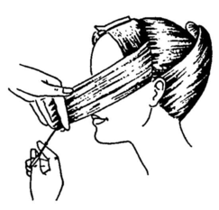 Перед початком стрижки волосся треба розділити проділом, що проходить від вуха до вуха через верхівку, волосся на зони: фронтально-тім'яну й потиличну.