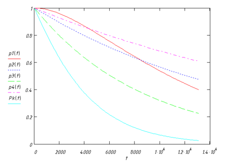 На Рисунке 7 приведены графики изменения вероятностей безотказной работы в зависимости от времени.