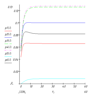 Рисунок 4 – График изменения вероятностей доступа в отдельные помещения кафедры в зависимости от времени