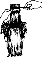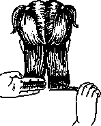рис.16 Снятие волос на пальцах. Верхний конец расчески указывает линию среза волос.