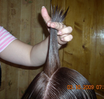 | Рис.40 | Вся теменная зона подчесывается к КП и отстригается на ее уровне. |