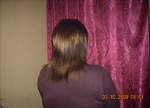 | Рис.36 | Таким образом на затылочной зоне у модели получился ярко выраженный угол из укороченных волос, что подчеркнуто окрашиванием затылочной зоны. |