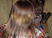 Для улучшения структуры волос нанести бальзам – ополаскиватель;