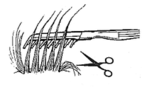 В наши дни широко применяется и точечный срез волос кончиками прямых ножниц (рис. 25), приводящий к смягчению линии среза с одновременной филировкой на 1-2 мм.