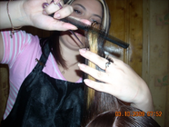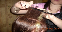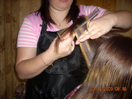 | Рис.44 | После укладки все концы волос прорабатываются филировочными ножницами, для их облегчения. Волосы расчесываются по форме прически, фиксируются лаком, для красивого и естественного блеска волос можно использовать «спрей – блеск» |