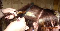 | Рис.34 | Следующая прядь выделяется параллельно предыдущей, к ней подчесывается контрольная прядь и отстригается по длине контрольной. |