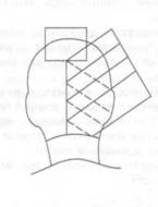 Стрижку начинают с фронтально – теменной зоны, в центре которой проводят вертикальный пробор, выделяют прядь шириной 1,5 – 2 см. волосы оттягивают перпендикулярно голове и стригут с внешней стороны пальцев, увеличивая угол среза к лицу. Так прядь за прядью все волосы фронтально – теменной зоны и височно-боковых зон (рис. 2).