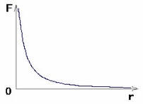 Графической моделью (рис.1) служит, например, зависимость модуля силы взаимодействия от расстояния между двумя телами (при постоянной величине зарядов тел).