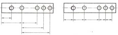 Ланцюговий - нанесення розмірів ланцюжком (один за іншим), але цей спосіб виключає один розмір (частини деталі, несхильний обробці) і тут потрібний довідковий розмір.