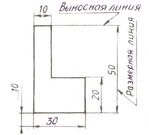 Розмірні та виносні лінії. Розміри на кресленнях зазначають розмірними числами і розмірними лініями. Під час нанесення розміру прямолінійного відрізка розмірну лінію проводять паралельно цьому відрізку, а виносні лінії – перпендикулярно до розмірних.