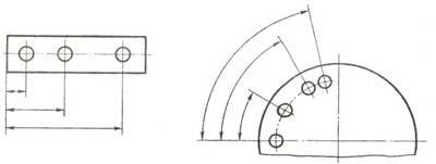 Наносячи розміри елементів, рівномірно розташованих по колу виробу (наприклад, отворів), замість кутових розмірів, що визначають взаємне розташування елементів, зазначають тільки їх кількість.