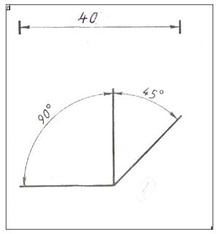 Фаска. Для позначення фасок з кутом 45° застосовують умовний напис, в якому перша цифра вказує довжину катета фаски у міліметрах, а друга – значення кута, наприклад 2 х 45°. Розміри фасок під іншими кутами зазначають за загальними правилами – лінійними та кутовими розмірами або двома лінійними розмірами.
