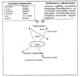 Опорный сигнал - ассоциативный символ (знак, слово, схема, рисунок и т.п.), заменяющий некое смысловое значение. Опорный конспект - система опорных сигналов в виде краткого условного конспекта, представляющего собой наглядную конструкцию, замещающую систему фактов, понятий, идей как взаимосвязанных элементов целой части учебного материала.