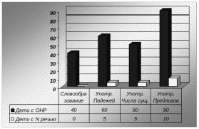 Сравним в диаграмме особенности грамматического строя детей с ОНР и детей без речевых нарушений
