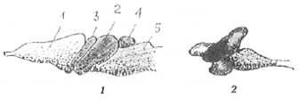 Рис. 4. Головной мозг: 1 – лягушка; 2 – рыба