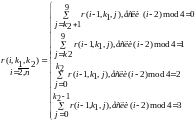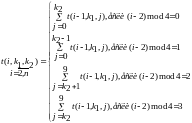 Следовательно, можно составить рекуррентную формулу, которая будет корректно вычислять количество n-значных волнистых чисел первого типа начинающихся на цифру k1 и заканчивающихся на цифру k2.