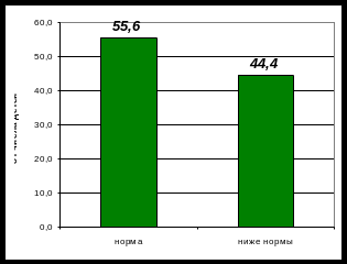 Как видим, чуть более половины класса показывают нормативные показатели внимания по характеристикам скорости и объема.